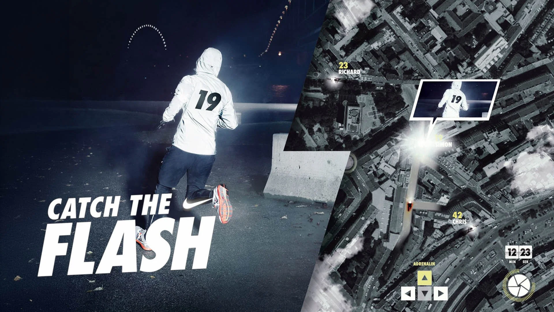 Para el lanzamiento de la chaqueta Vapor Flash de Nike, una chaqueta para correr completamente reflectante, “Catch the Flash” siguió la idea de “hacer visible lo invisible”. Cincuenta corredores se aventuraron en las oscuras calles de Viena como “Flashrunners” con toda la ciudad persiguiéndolos. El perseguidor que capturara con su cámara a más Flashrunners, revelando así los números de sus chaquetas, ganó una barra de platino de 10,000€.